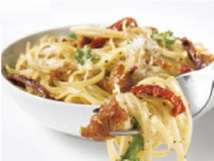 - Dans la même casserole, chauffer l'huile à feu moyen et ajouter la chair des saucisses. Faire revenir pendant 3 minutes. Ajouter l'ail, les tomates séchées et 125 ml (1/2 tasse) d'eau de cuisson des pâtes. Faire cuire pendant 5 minutes en brassant de temps à autre ou jusqu'à ce que la chair des saucisses soit cuite.