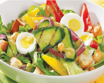− Dans un bol, mélanger les ingrédients de la vinaigrette. Réserver.